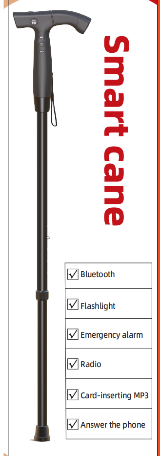 The Smart Cane is more than just a walking aid—it’s your reliable companion for safety, communication, and entertainment. Designed with an ergonomic handle for maximum comfort, every detail is crafted to make your daily life easier and more secure.